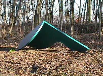 1996 - coated steel (here exhibited in OUTSIDE-IN Open Air Sculpture Museum, Sculpture Park Drecht Banks, Zwijndrecht The Netherlands)