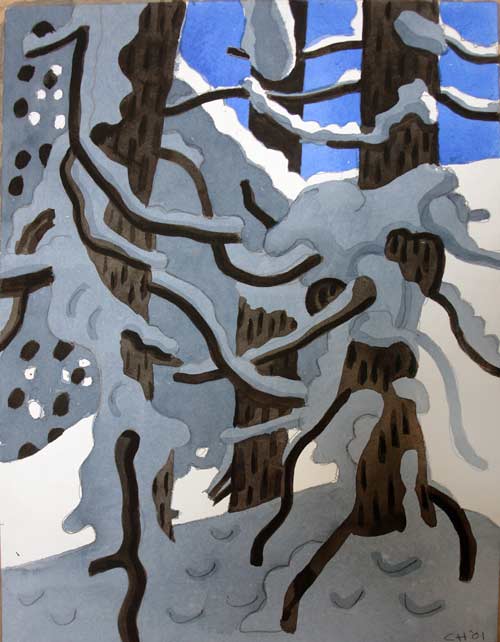 Trees and snow - watercolor