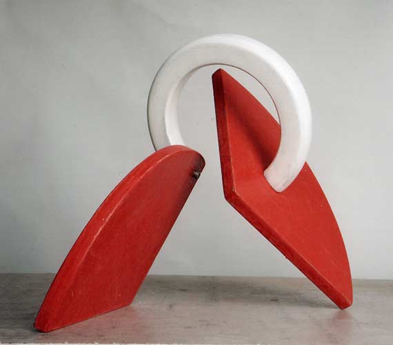 2006 - mat gepol. hout - h25cm object van twee delen verbonden door ring