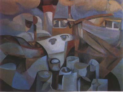 A Tugboat on the Neva River 1990 - tempera on argolyte - 90 X 120cm next workworks indexrésumé|cvhome page
